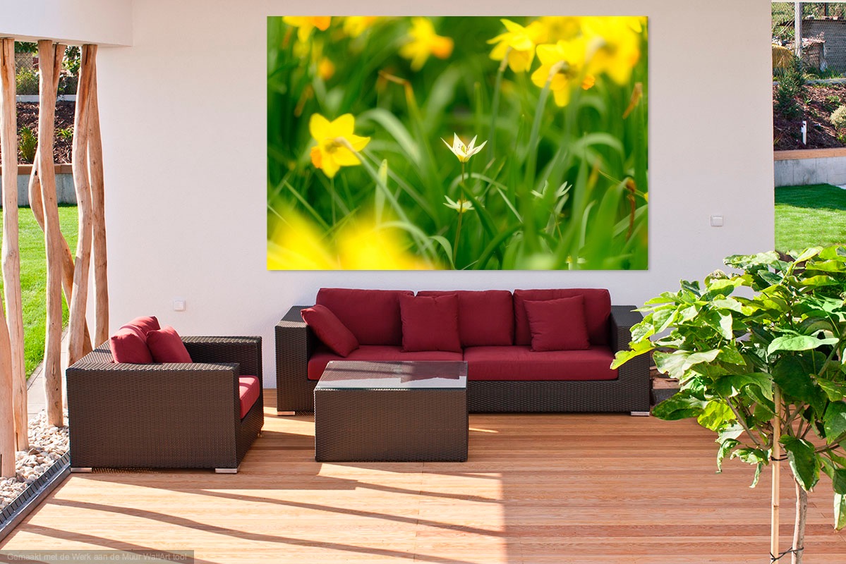 Voor het gebruik in de tuin kan er voor “Canvas voor buiten” gekozen worden en voor binnen is dit een werk dat op een ondergrond met structuur kan als een gladde ondergrond kan worden afgedrukt.